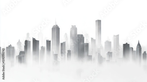 City skyline shrouded in fog. Urban landscape in mist. Possible use Stock photo