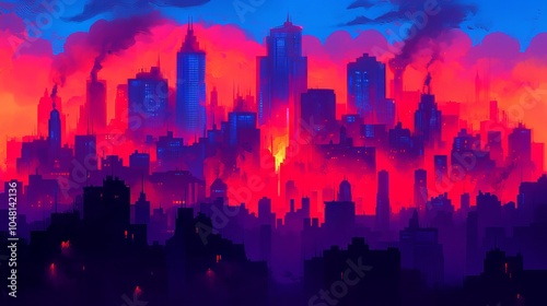 background, abstract, architecture, pink, artwork, sky, dusk, wallpaper, aesthetic, modern, tower, silhouette, city landscape, skyline, illustration, blue, poster, contemporary, sunset, design, skyscraper, shadow, colourful, urban, metropolis, horizon, art, digital, vibrant, building