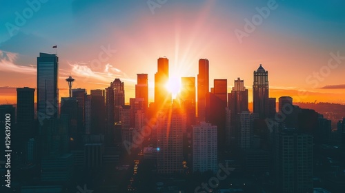 skyline, city, sunset, skyscraper, building, urban, twilight, gold, hours, sun, light, ray, horizon, architecture, silhouette, cloud, city landscape, metropolis, downtown, view, panorama, aerial, photo, photo, landscape, jungle, evening, gloaming, red, orange, yellow, blue, purple, warm, colours, bright, high-coloured, dramatic, beautiful, amazing, breathtaking