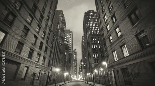 city, night, street, urban, building, architecture, alley, light, dark, black-and-white, perspective, tall, modern, historic, street light, empty, road, concrete, urbanism, skyscraper, city landscape, illuminated, dusk, dawn, shadow, alleyway, downtown, pathway, facades, building, vertical, grey, monochrome, grey, wide, photo, photo, image, view, long, evening