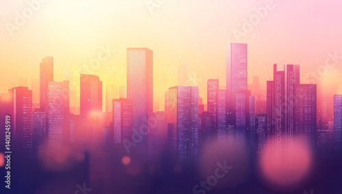 city, building, skyscraper, sunset, urban, metropolis, twilight, horizon, skyline, city landscape, downtown, architecture, modern, city landscape, evening, light, glow, silhouette, tower, city lights, night, pink, purple, orange, yellow, colours, vibrant, warm, dreamy, scenic, beautiful, view, panorama, illustration, graphic, design, art, abstract, composition, style