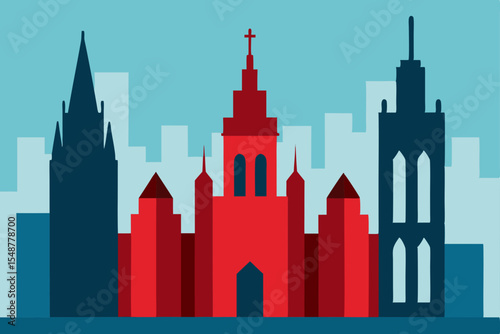 city landscape, architecture, building, city, diverse, visual, silhouette, skyscraper, minimal, colourful, vibrant, skyline, tall, vignetting, graphic, historical, tower, geometric, simple, drawing, style, architectural, modern, art, urban, abstract, clean, red, church, design, building, landscape, engaging, flat, narrative