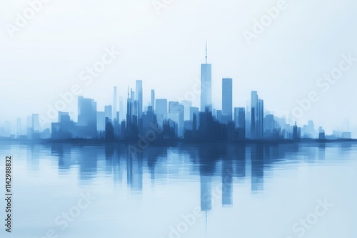 city, skyline, water, urban, building, architecture, modern, city landscape, skyscraper, tower, horizon, peaceful, tranquil, serene, calm, blue, tone, image, photo, design, background, illustration, graphic, visual, abstract, concept, scene, view, landscape, metropolis, downtown, highrise, structure, silhouette, stillness, peace, quiet, calmness, day, light, morning, evening, mist, fog, haze, dreamlike