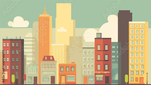 Cityscape vector illustration city different houses buildings and structures in the downtown.