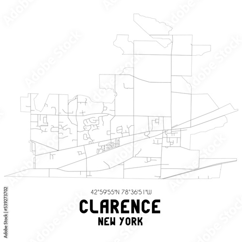 Clarence New York. US street map with black and white lines.