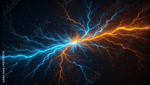 Clashing Cosmic Energies Blue and Orange Lightning Collision, Abstract Art, Energy, Power, Plasma Cosmic, Electricity