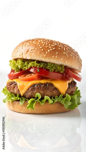 hamburger, burger, food, epicure, juicy, fresh, commercial, professional, photo, delicious, meal, lunch, dinner, snack, fast food, classic, beef, cheese, lettuce, tomatoes, bun, grilled, closeup, appetising, savoury, crispy, mouth-watering, indulgent, advertising, marketing, eatery, menu, premium, artisan, styled, realistic, gold, flavorful, satisfying, epicure, culinary, tempting, glossy, hand-held, hearty