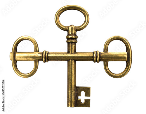 Classic Antique Gold Key with Curved Bow Handle on Rustic Texture Finish