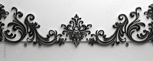 Classic black and white wedding mockup card background with a clean, elegant design. A sophisticated damask pattern and a touch of silver add timeless beauty.