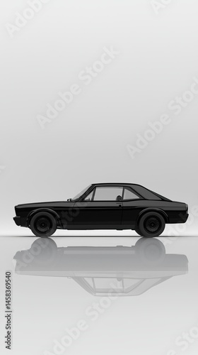 Classic black car silhouette with a stylish reflection on a smooth surface.