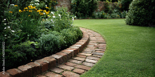 brick, lawn, edging, curved, pattern, garden, border, natural, texture, rustic, charme, classic, landscaping, design, pathway, redbrick, vintage, traditional, hand-made, hard-wearing, decorative, timeless, elegant, countryside, bungalow, organic, weathered, aged, handcraft, masonry, stone, terracotta, cobbled, artisan, brick