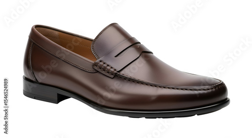 Classic Brown Leather Loafer Shoe with Transparent Background