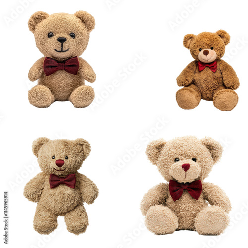 Classic brown teddy bear with red bow tie transparent background for whimsical decor
