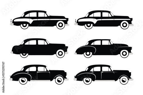 Classic Car Collection: A collection of iconic, vintage cars presented in elegant silhouettes, embodying the timeless charm and legacy of automotive history.