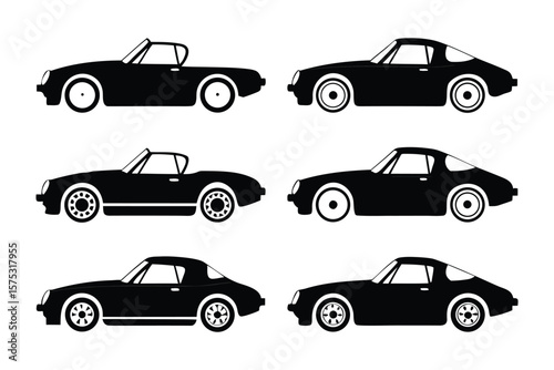 Classic Car Collection Silhouettes: A collection of iconic classic car silhouettes, presented in striking black and white, perfectly capturing their timeless elegance and the romance of the road.