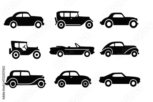 Classic Car Silhouette Design: Timeless Elegance in Black and White Vector Art for Vintage Vehicle Enthusiasts