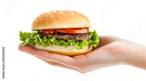 Classic Cheeseburger with Fresh Ingredients in Hand