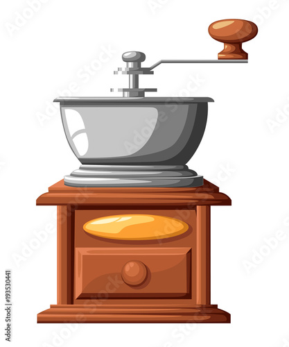 Classic coffee grinder manual coffee mill vector illustration isolated on white background