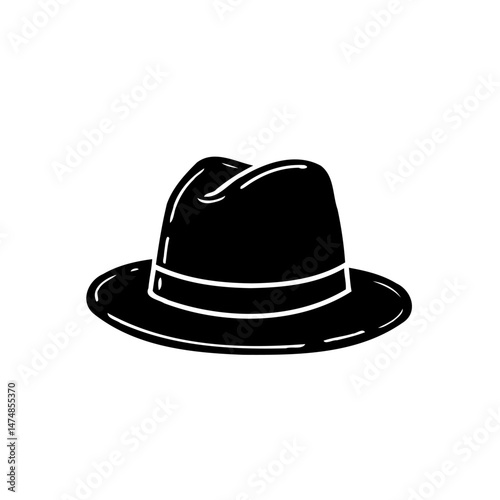 hat, vintage, fedora, style, fashion, headwear, classic, retro, design, silhouette, rimmed, elegant, gentleman, apparel, formal, accessory, old, fashioned, black, white, icon, simple, symbol, drawing, outline, illustration, graphic, isolated, vector, clothing, man, culture, detective, art, costume, shadow, traditional, jazz, film, musical