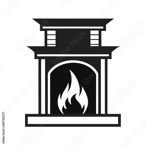 Classic fireplace silhouette design element for cozy home ambiance isolated on white background