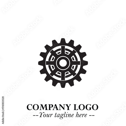 Classic Gear Logo Symbol Black and White Illustration with Modern Industrial Minimal Design