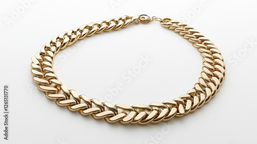 Classic gold herringbone necklace, smoothly arranged on a white background with soft lighting
