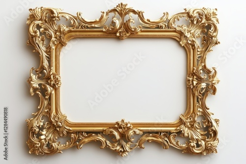 Classic golden baroque frame with floral details hanging on a white wall, creating a luxurious and elegant atmosphere