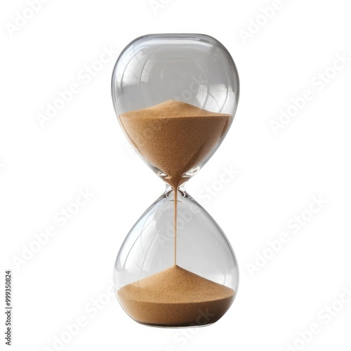 Classic Hourglass with Sand Flowing from Top to Bottom, Symbolizing the Passage of Time, Set Against a Clean White Background to Highlight the Hourglass