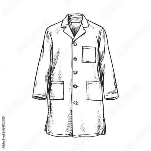 Classic lab coat sketch with pockets for pros and students. Vector hand drawn illustration