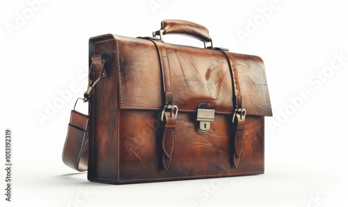 Classic leather briefcase, white background, 4K hyperrealistic photo