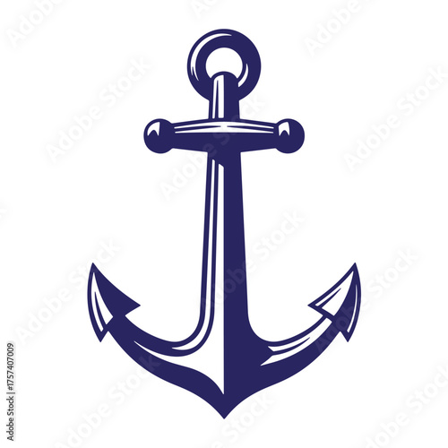 Classic navy blue anchor design on white background suitable for nautical themed designs