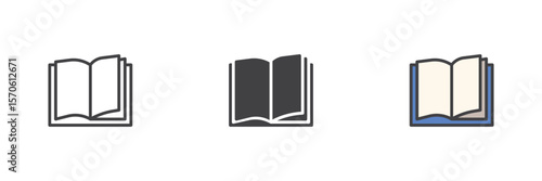 open book, icon, line, outline, solid, glyphs, set, pack, book, page, reading, literature, library, education, study, classic, symbol, logotype, vector, filled, colours, colourful
