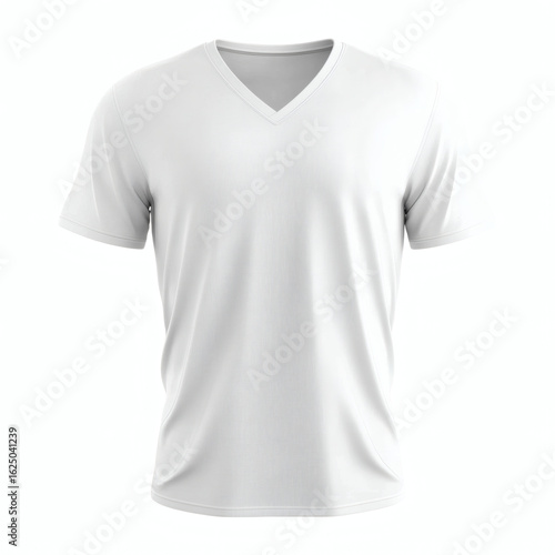 Classic plain white V-neck short sleeve t-shirt 3D mockup, ideal for showcasing your custom prints and designs on a white background