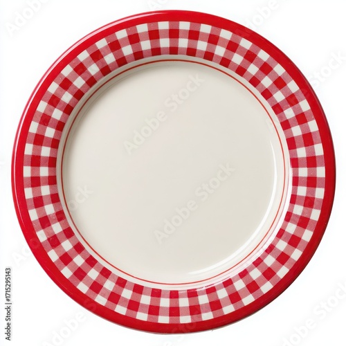 plate, red, white, gingham, chequered, round, tableware, dish, kitchen utensile, retro, vintage, nostalgia, 50s, 1950s, eatery, cafes, dinner, food, meal, serving, design, pattern, texture, background, isolated, clean, simple, elegant, classic, hi-res, image, photo, royalty free