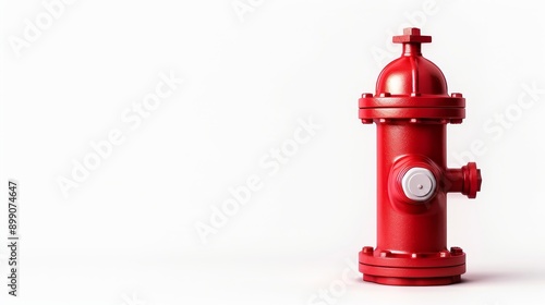 Classic red fire hydrant, isolated on a white background, ample copy text space, no distractions
