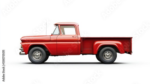 Classic red pickup truck, studio shot, white background, vintage vehicle, advertisement
