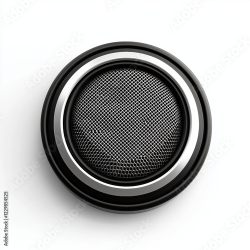 classic round speaker with a silver grille and a black outer frame, centered on a clean white background