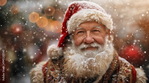 Classic Santa Claus with Real Beard, Snowy Portrait, Christmas Magic and Holiday Cheer
