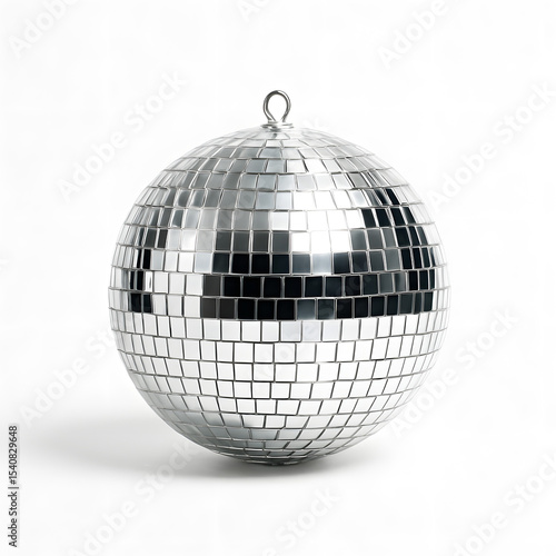 Classic silver disco ball reflecting light on a clean white background.