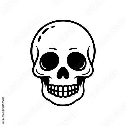 skull, head, bone structure, teeth, emblem, logotype, branding, icon, crest, badge, graphic, vector, black-and-white, monochrome, scalable, front view, portrait, anatomy, anatomical, historic, gothic, grisly, edgy, fashion, identity, marketing, corporate, mascot, symbol, design element, decorative, merchandise, rock, punk