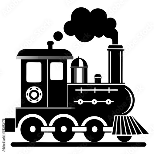 steam, locomotive, train, engine, railroad, transportation, vintage, historic, old, transport, power, industry, machinery, mechanical, vehicle, travel, journey, railway, heritage, silhouette, icon, symbol, graphic, design, illustration, art, drawing, black, and, white, simple, clean, minimalist, outline, shape, isolated, background, chimney, smoke, stack, historical