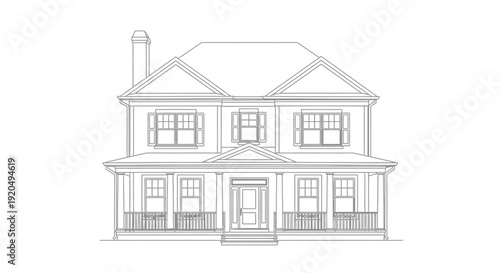 two-story, drawing, porch, residential, architecture, building, property, real estate, design, blueprint, dwelling, traditional, colonial, suburban, modern, simple, line art, vector, illustration, construction, mortgage, investment, contemporary, urban, living, planning, home, structure, graphic, design element, black-and-white, minimal, clean, silhouette, facades, housing