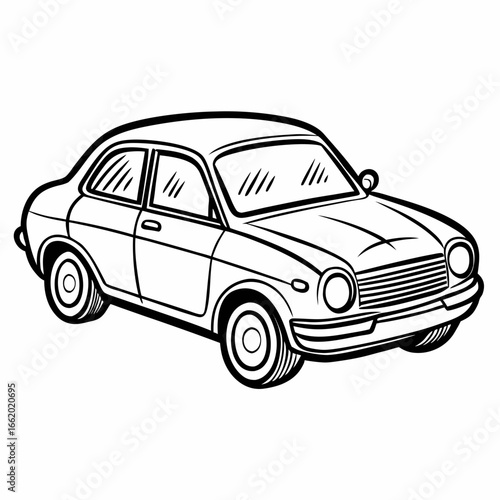 Classic vintage car illustration in bold outline, perfect for retro automotive designs, vintage advertising, and nostalgic transportation themes.