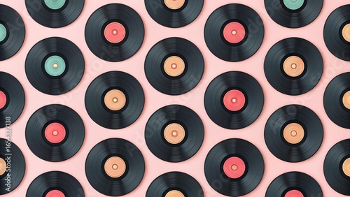 Classic Vinyl Records Pattern on Pink Background Capturing Retro Music Vibes