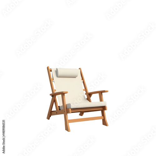 Classic Wooden Beach Chair with Comfortable White Cushions, A Symbol of Relaxation and Coastal Leisure