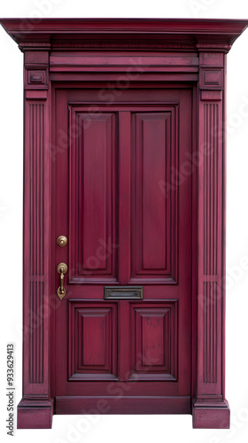 Classic wooden dark red framed door isolated on white background