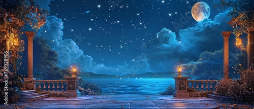 Classical stage scene, starry night backdrop, enchanting and regal atmosphere