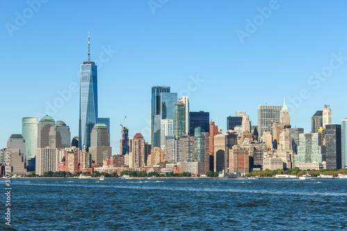 skyline, new york city, new, york, low angle, low, us, us, natural, colours, colours, clean, clear, sky, city, downtown, manhattan, water, building, city landscape, panorama, panoramic, skyscraper, urban, architecture, design, new york city, horizontal, business, office, holiday maker, tour tourism, travel, beautiful