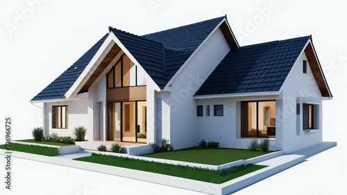 Clean and precise 3D representation of a house, devoid of background distractions. Real estate concept.