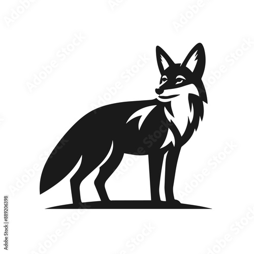 Clean black and white vector Silhouette of a Black-backed jackal isolated on white background
